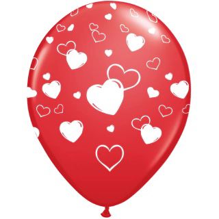 GLOBO CORAZONES ROJO IMP BLANCO X50