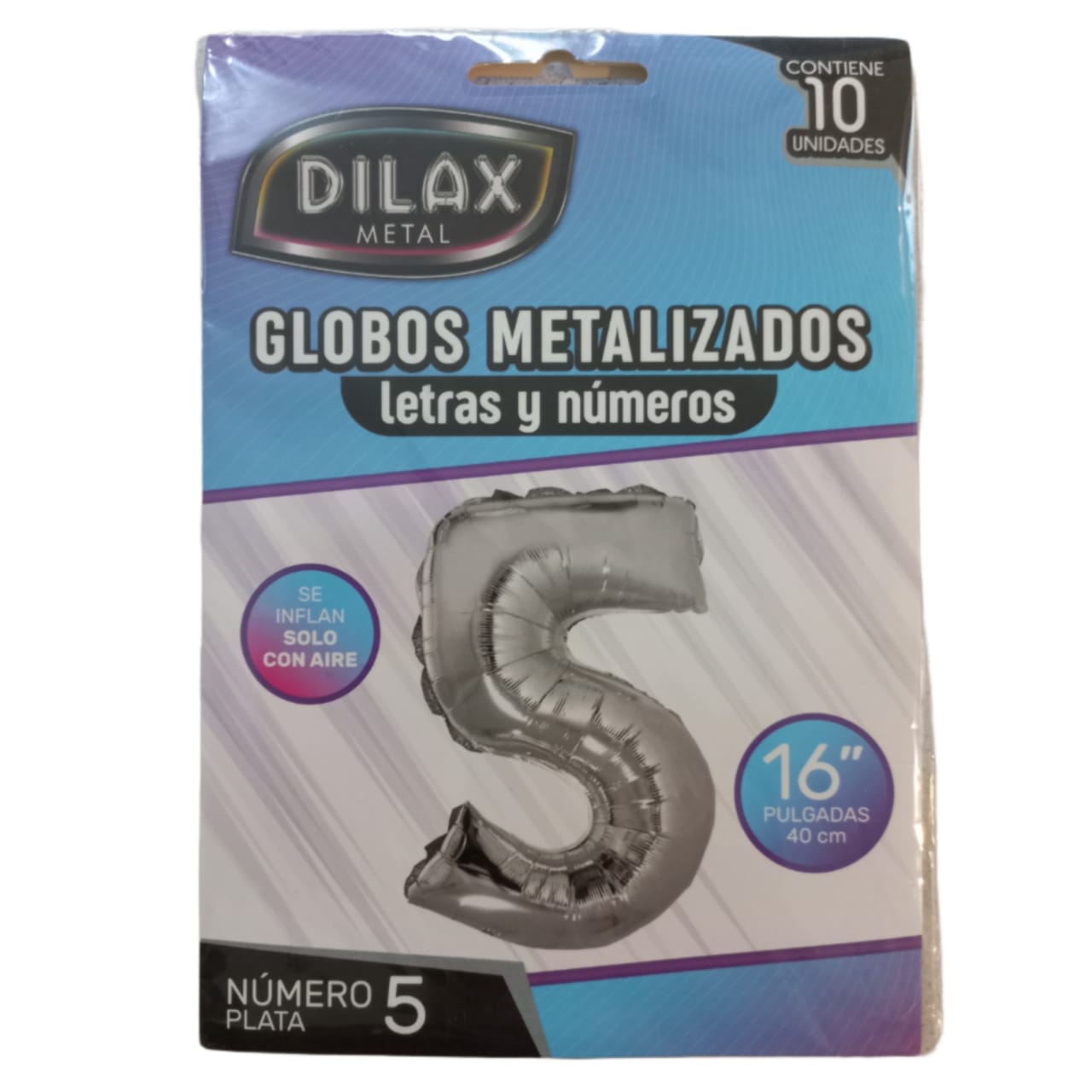 GLOBO NUMERO 5 PLATEADO 16″ X10