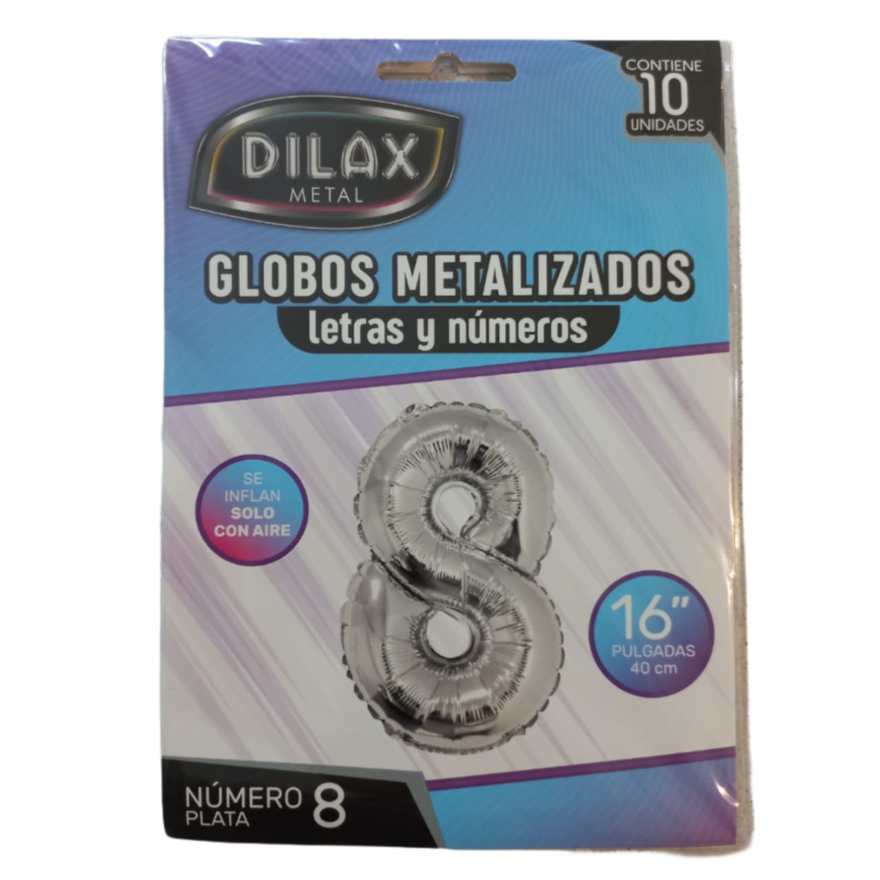 GLOBO NUMERO 8 PLATEADO 16″ X10