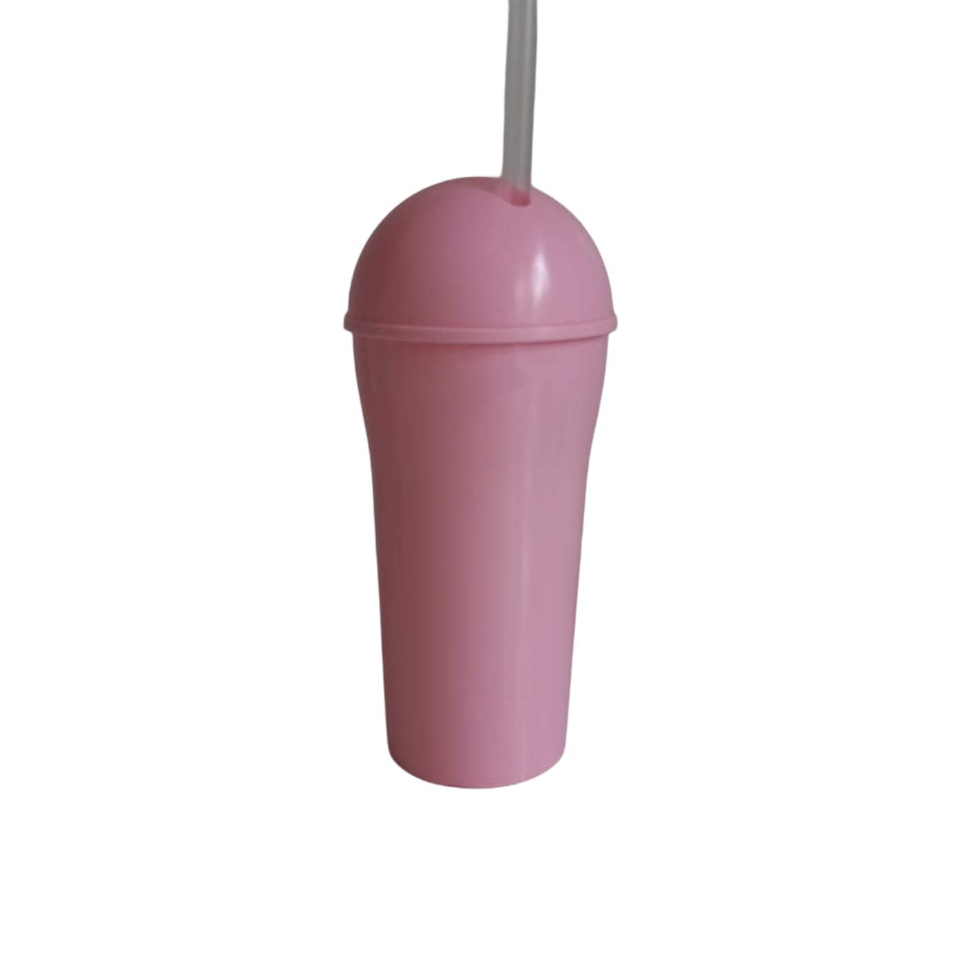 VASO CON TAPA Y SORBETE RIGIDO ROSA PASTEL X100