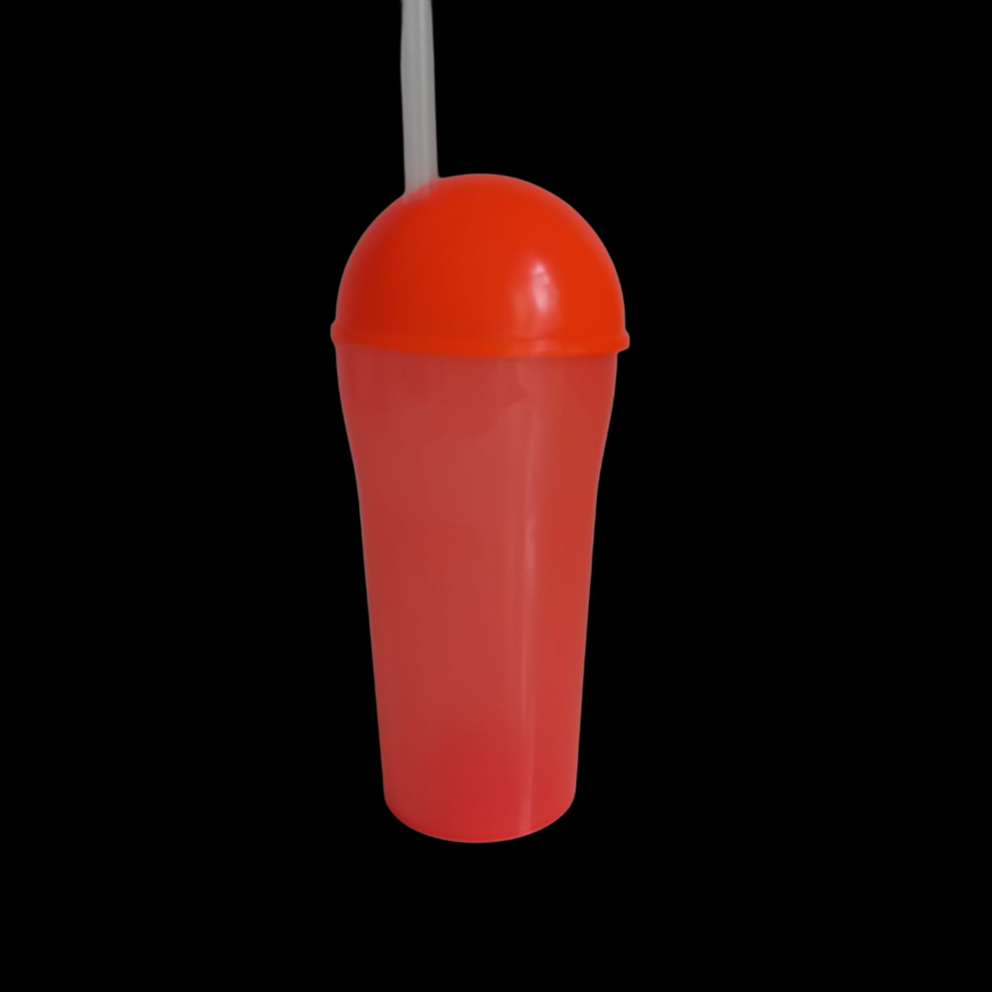 VASO CON TAPA Y SORBETE RIGIDO NARANJA FLUO X100